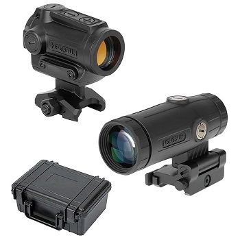 Коллиматор комплектуется креплением 1.63" (lower 1/3 co-witness), что позволяет использовать его совместно с механическими прицельными приспособлениями. Увеличитель HM3X устанавливается на планку Weaver/Picatinny с быстросъёмным QD-монтажом. Такая компоновка облегчает интеграцию комплекта в различные конфигурации и позволяет оперативно менять режим стрельбы.